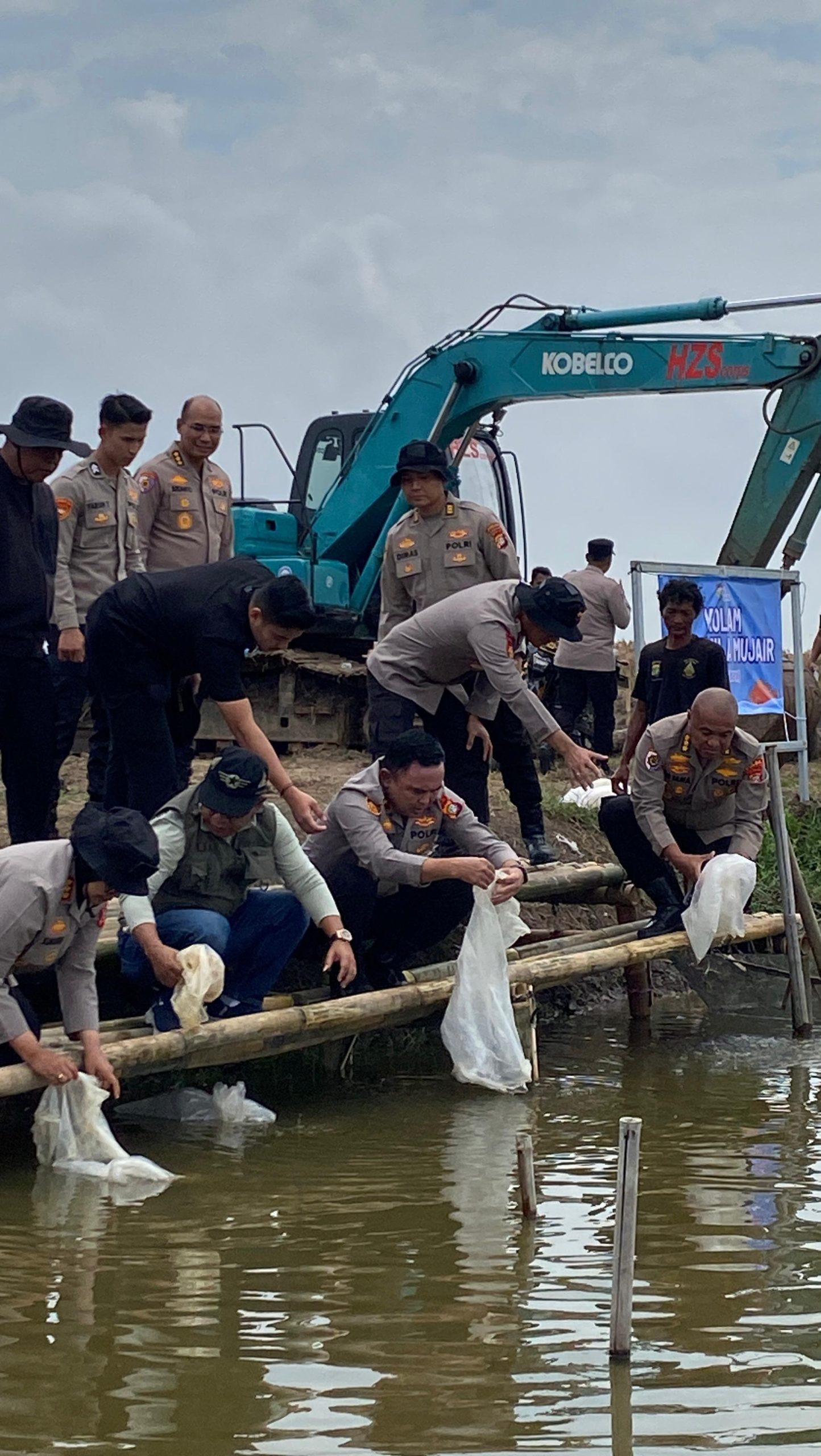 Wakapolda Metro Jaya, Brigjen Pol. Dekananto Eko Purwono, mewakili Kapolda Metro Jaya, memimpin langsung kegiatan penebaran benih ikan tahap ke-2 di kawasan seluas 49 Hektar tambak Muaragembong, Kabupaten Bekasi, Sabtu (18/04/2026).