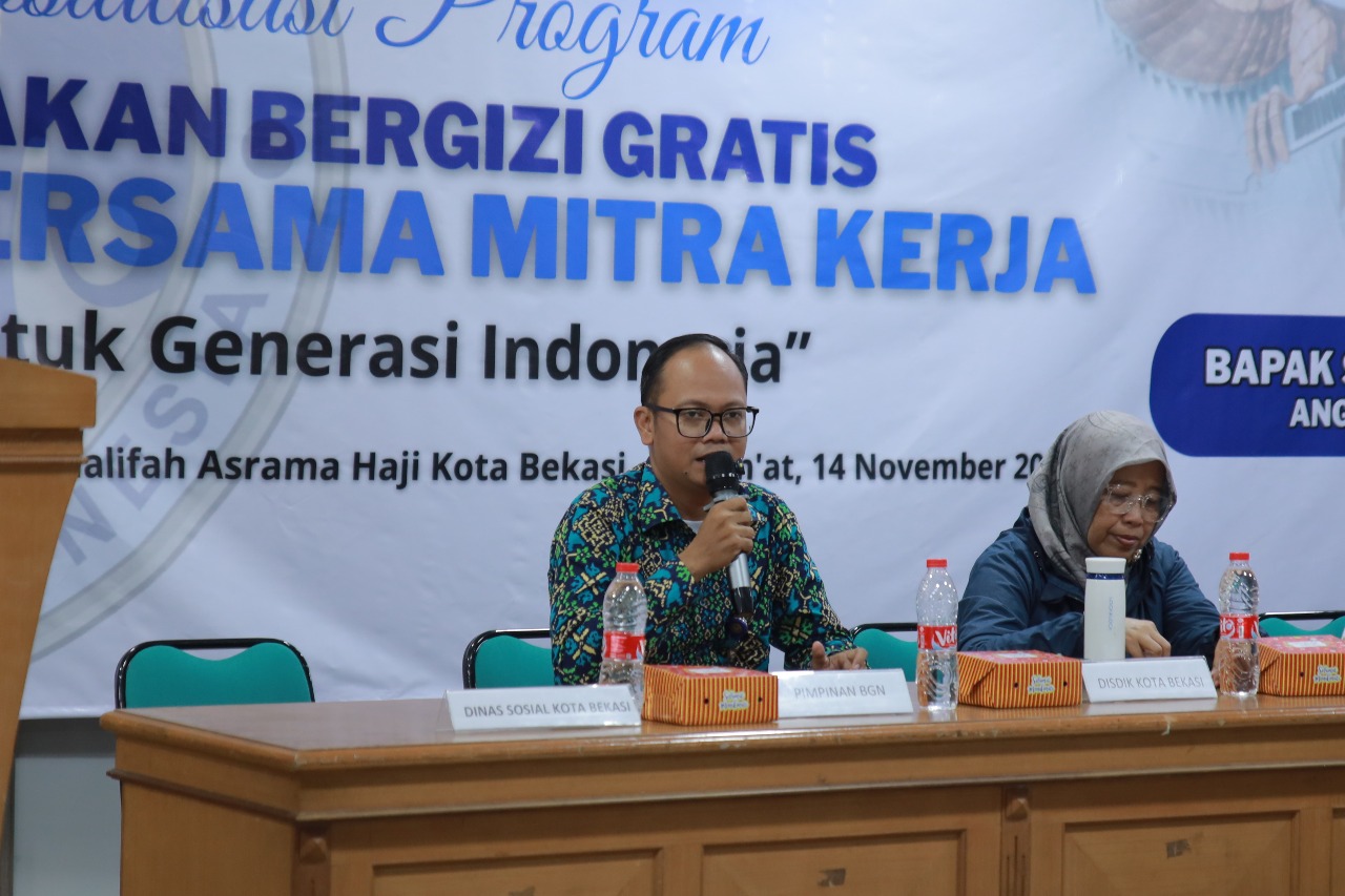 Sementara itu, Perwakilan Dinas Pendidikan Kota Bekasi, Siti Aisah, dalam pemaparannya menyampaikan terkait dengan program pemerintah “Makan Bergizi Gratis”, Program ini termasuk perwujudan dari Asta Cita Presiden RI Prabowo Subianto. Merupakan program prioritas nasional dan langkah strategis dalam mempersiapkan generasi unggul menuju visi Indonesia Emas 2045.