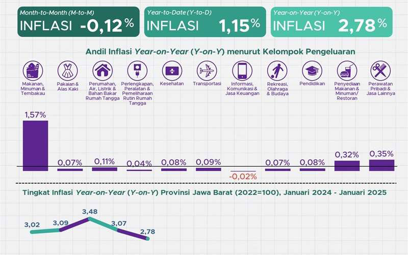 Kabarsebelas.id | Badan Pusat Statistik (BPS) Provinsi Jawa Barat (Jabar) menyebutkan inflasi Year on Year (yoy) di Jawa Barat pada bulan Mei 2024 tercatat sebesar 2,78 persen.