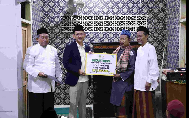 Kabarsebelas.id | Penjabat Bupati Bekasi, Dani Ramdan bersama Ketua Baznas Kabupaten Bekasi, Samsul Bahri turut menyalurkan program Bekasi Taqwa dalam bentuk bantuan fii sabilillah sebesar Rp 5 juta untuk pemeliharaan masjid, yang diserah terimakan kepada ketua Dewan Kemakmuran Masjid (DKM) Nuraini, pada Sabtu (20/07/2024) pagi.